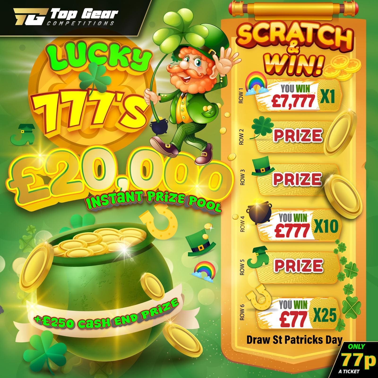 🍀 Lucky 777s – Instant Win Competition ( £250 Final Auto Draw )