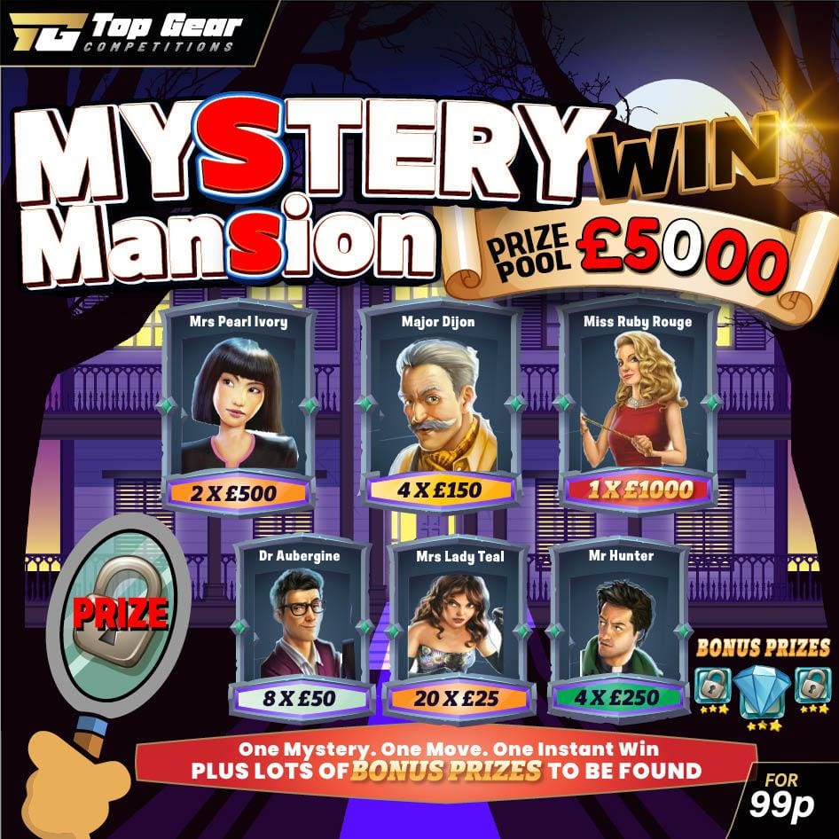 Step into the Mystery Mansion for your chance to unlock incredible cash prizes and bonus site credit rewards – all for less than £1 per ticket!